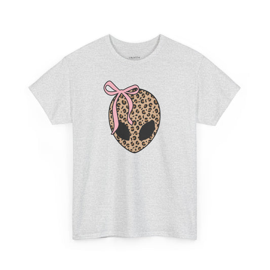 Leopard Alien Head Tee with Pink Bo