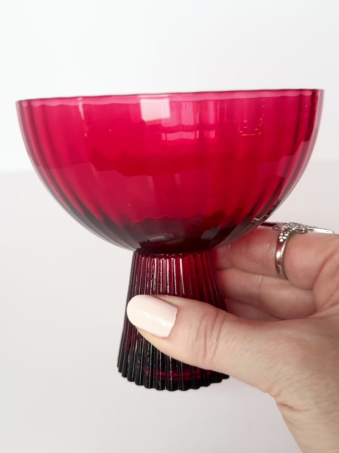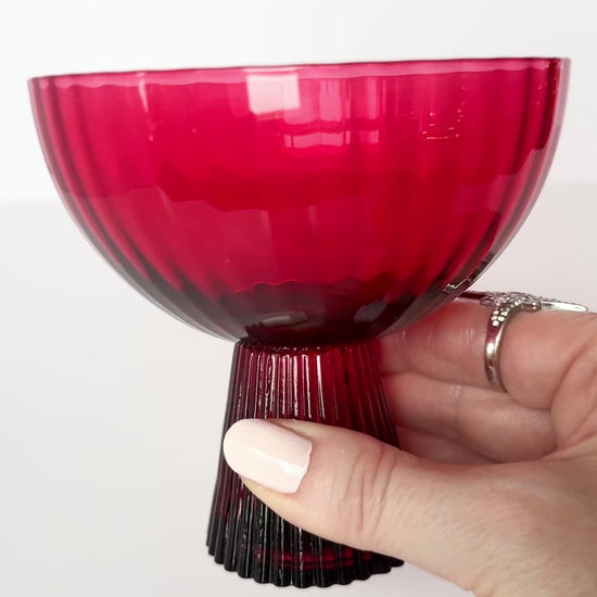 The Cherry Red Coupe features a deep cherry stem that transitions into a brighter red bowl — a subtle contrast that feels both indulgent and restrained.